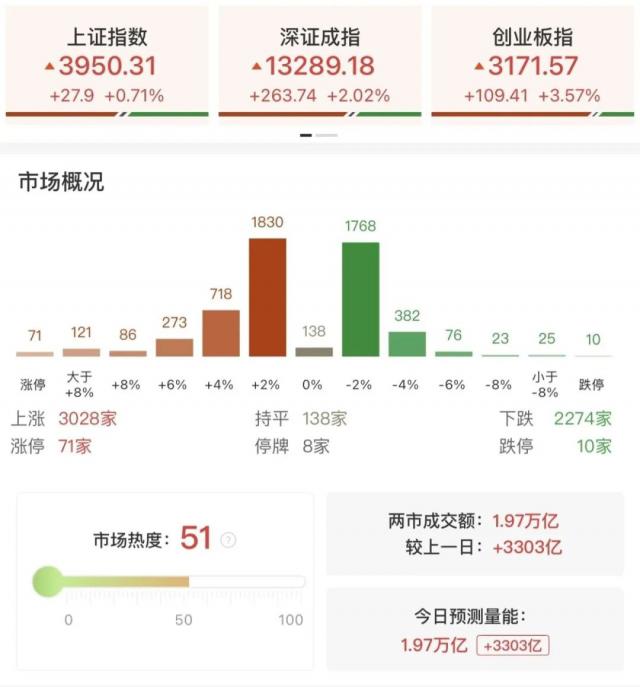截至收盘,沪指涨 0.71%,深成指涨 2.02%,创业板指涨 3.57%。